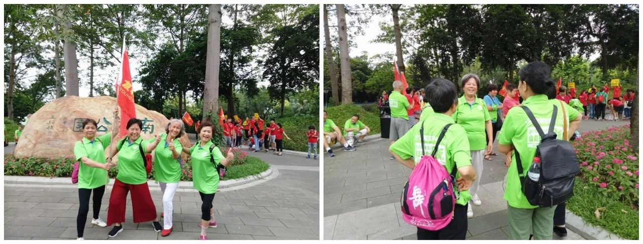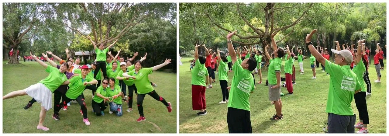 出发前,红绿CP团队进行热身活动,健身操广播体操动起来!伸伸手、弯弯腰、踢踢腿、跳一跳……跟着音乐一起来,从头到脚,全身运动每一个细胞。