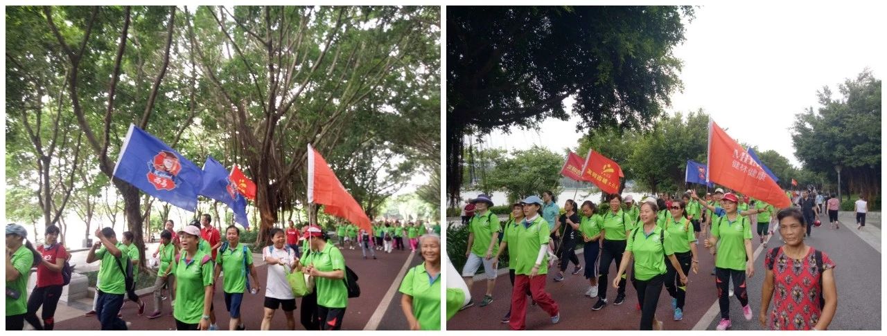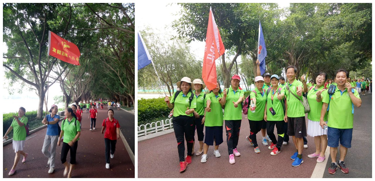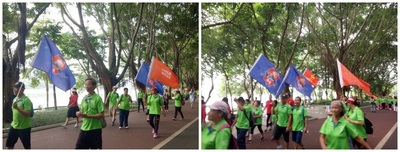 清晨,天色亮起,近千名参与健步走”的健将们兴高采烈、成团结伴按时到达本次活动的起点“南湖公园入口签到