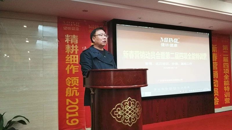 健林健康总经理韩总、销售中心营销总监程总分别发表讲话。韩总表示,在现今大环境下更需精耕细作,扎实基础,提供客户极致的服务,携手共赢未来。