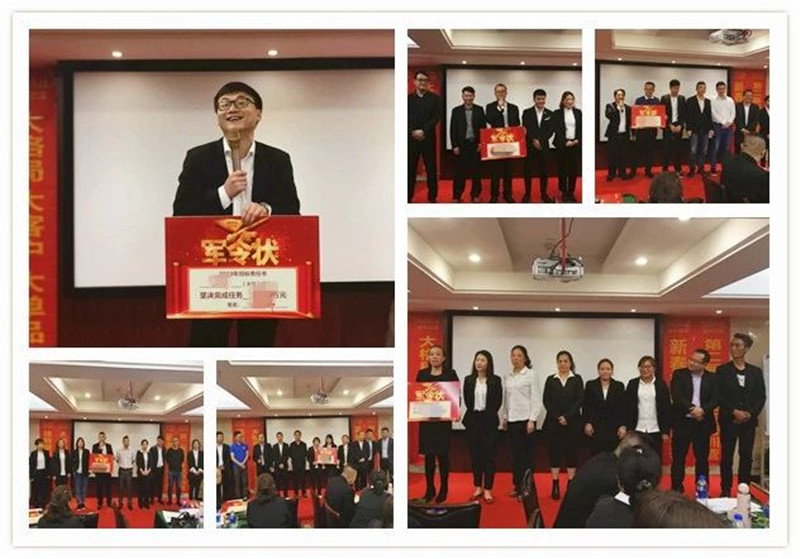 各大区经理带领队员很开心地领取销售任务。大家的营销热情似火,以饱满的精神状态迎接新挑战,势必拼搏再攀高峰,力争全面实现年度销售目标,共创共赢!