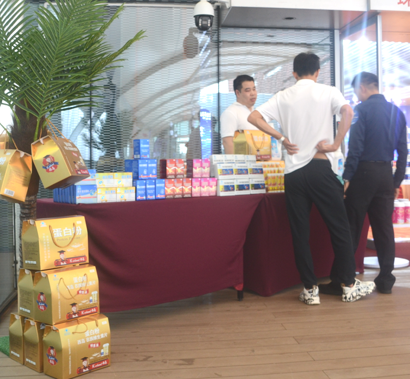 为体现健林健康的品牌实力,让客户充分了解产品及其品质,健林健康特别在会场设置了富有创意的新品展区,展出西岛、健康在线、淘气龙、全护康四大品牌的爆款和新品。配以沙滩、椰树等海岛格调,展品区诠释了“天然、自然、健康”的健康理念,带给参观者和经销商不一样的惊喜。
