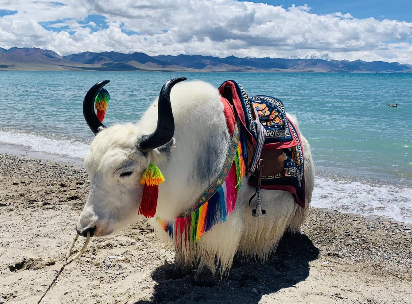 随着道路攀升,身边的雪山不断增加,蓝天白云下的雪山,让西藏的正式游程多了新奇和激动。