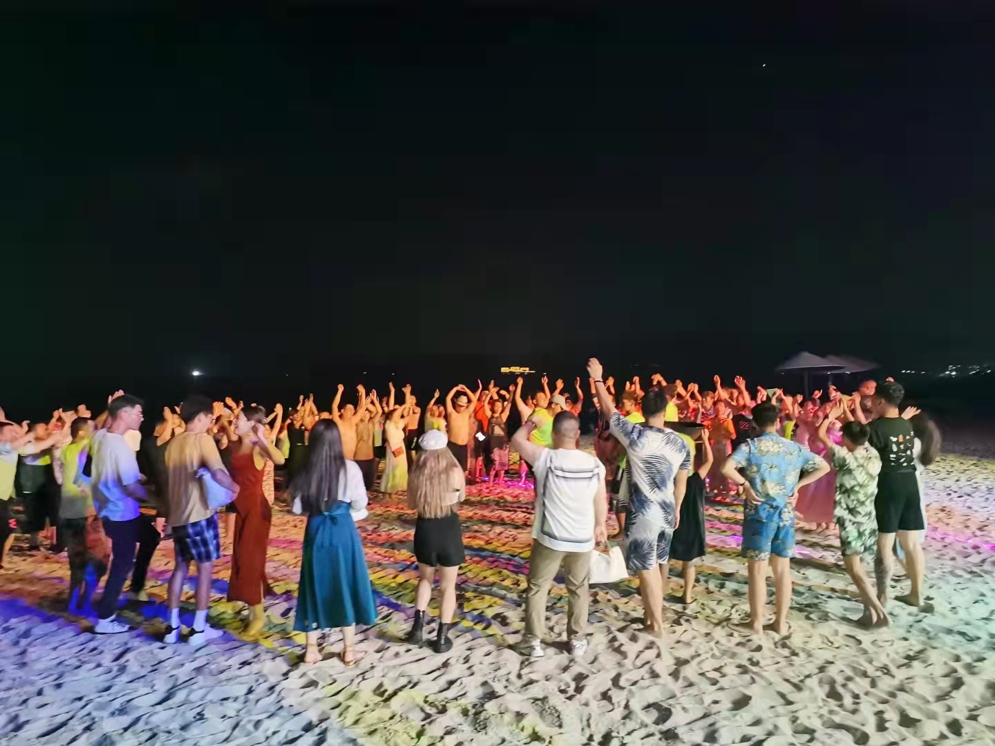 夜幕深垂,吹着海风、伴着海浪,在璀璨闪烁的灯光下,大家一起跟随劲爆的音乐、打着节拍,纵情歌舞,嗨翻海边狂欢大趴!让我们暂时忘记生活的琐碎、工作的烦恼,放松身心,抛掉疲惫,忘我享受当下!