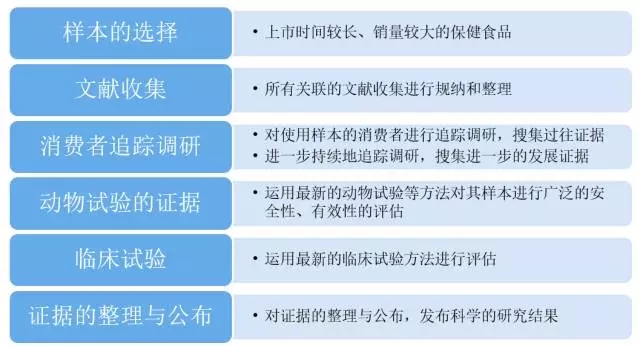 通过循证医学的方法,如:采用文献收集,消费者研究,市场调研,科学试验,以及大量的动物及临床试验等手段,验证保健食品的安全性和有效性。