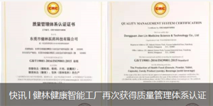 快讯│健林健康智能工厂再次获得质量管理体系认证