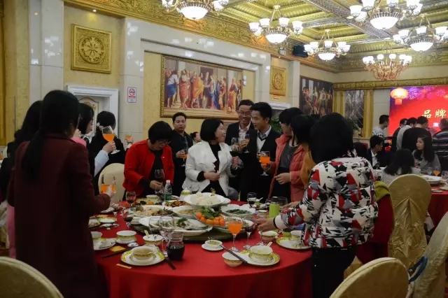 晚宴上,健林生物董事长吕宏友与高管们举杯祝酒,祝大家新年快乐,猴年发大财,员工之间也相互敬酒,增进感情。